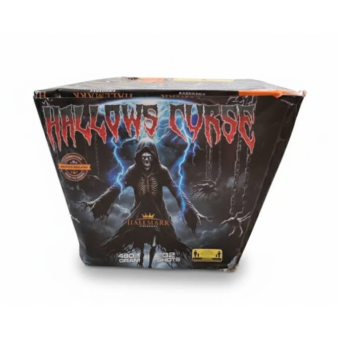 Summon the darkness. Hallows Curse brews a wicked storm with its enchanting fusion of fountain and shots. Crackling cackles and ghostly glimmers rise from the underworld in this haunting 32-shot display. It’s a cursed relic in firework form, unleash it… if you dare.