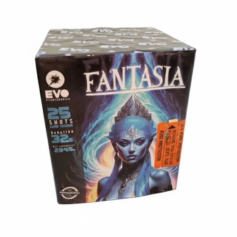 -56%Step into the vibrant dreamscape of Fantasia, a beautiful 25-shot cake from Evo Pyrotechnics. This low-noise straight-firing barrage offers a colourful and elegant performance lasting 32 seconds. Watch as tails of red, green, yellow, purple, and blue ascend, splitting into vivid matching colour stars—each effect perfectly punctuated by a shimmering silver strobe. With 25mm tubes, Fantasia delivers a graceful and richly coloured aerial spectacle suitable for any occasion. This Firework used to be called Moonfall.