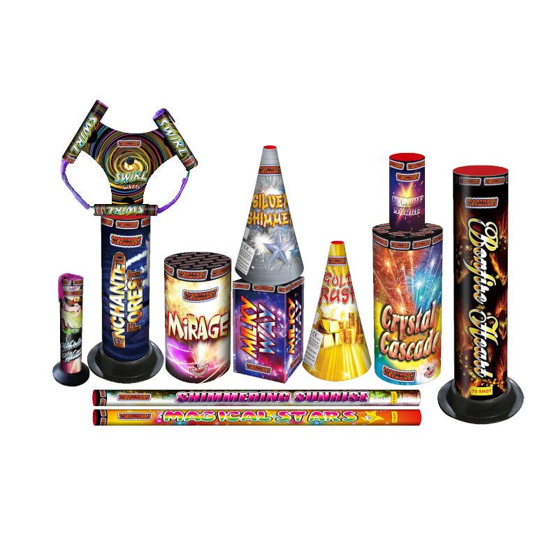 12 fireworks in total comprising one of each of the following: