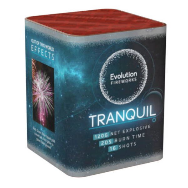 Experience the peaceful elegance of Tranquil, a low-noise, 16-shot firework from Evo Pyrotechnics. Over a serene 20 seconds, this F2 barrage launches beautiful golden effects from 20mm tubes. Watch as Gold Coco palms burst into rich shades of red, green, and blue, perfectly complemented by soft red strobes and the unique shimmering effect of green fallen leaves. Tranquil is the perfect choice for a sophisticated, gentle display.
